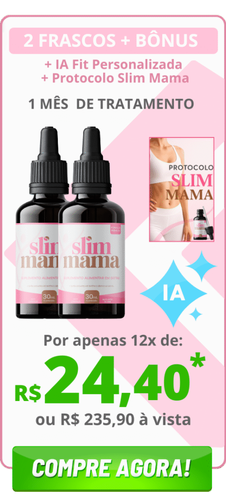 SLIM MAMA, a mais nova e revolucionária solução para aqueles que buscam alcançar seus objetivos de emagrecimento e combater as gorduras mais difíceis de ser eliminadas, de forma eficaz e saudável. Nossa fórmula exclusiva combina ingredientes poderosos e naturais, cuidadosamente selecionados para oferecer resultados impressionantes. O SLIM MAMA é a forma mais eficaz, garantindo até 98% da absorção dos ativos da composição, deixando seu organismo com maior biodisponibilidade e potencializando seu emagrecimento .